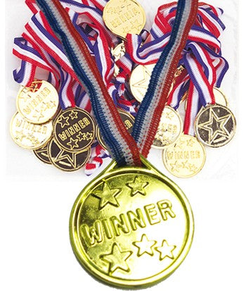 These gold winner medals are perfect for party bags and make ideal classroom and sports day prizes. Each medal has 'winner' on one side and comes with a 70cm striped neck cord.