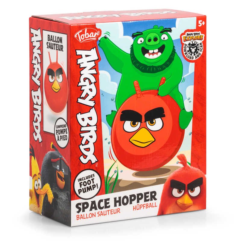 Classic space hopper given an Angry Birds make over. This bright red hopper features the face of protagonist Red on one side, whereas the reverse has the Angry Birds logo. Inside the box you will also find a foot pump, which helps to inflate the space hopper to its maximum size of 60cm. To use it, simply climb on top of the hopper, grab the two handles and start bouncing!