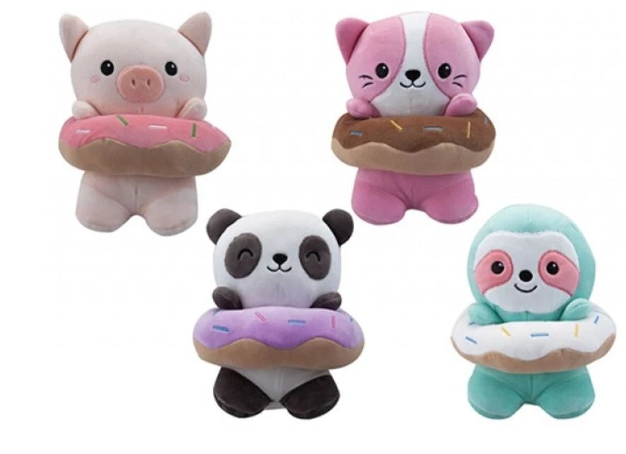 Double the cuteness! This Animal Plush with Donut Ring combines two favourites — an adorable animal and a colourful, squishy donut floatie. Perfect for cuddles, display, or imaginative play, it’s a fun treat for plush lovers of all ages.