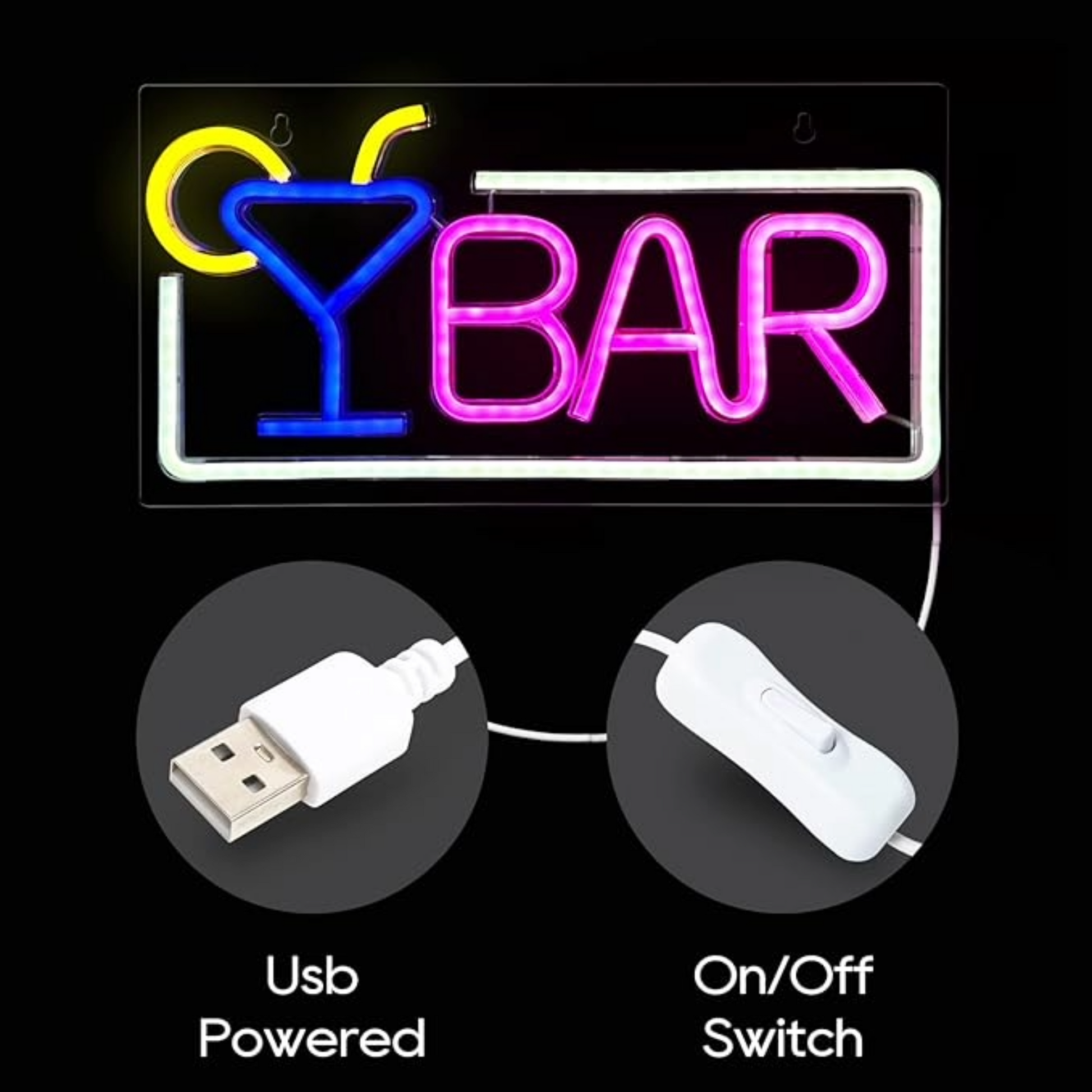 Light up your space with this vibrant bar neon light, perfect for home bars, kitchens, or entertaining areas. With its bold design and bright glow, it creates a fun, relaxed atmosphere that's ideal for parties or casual evenings in. Easy to mount or stand, it’s a great way to add personality and colour to any room.