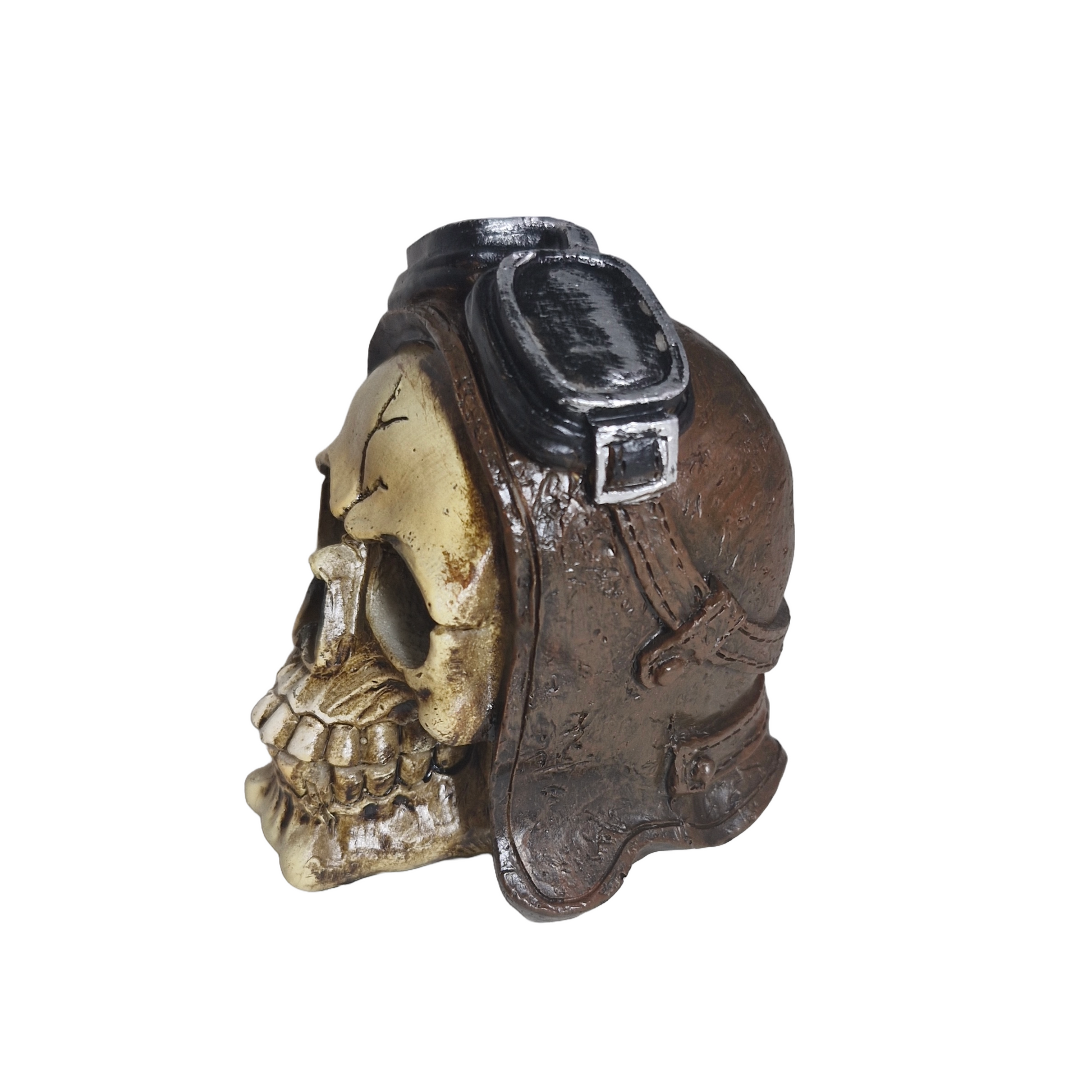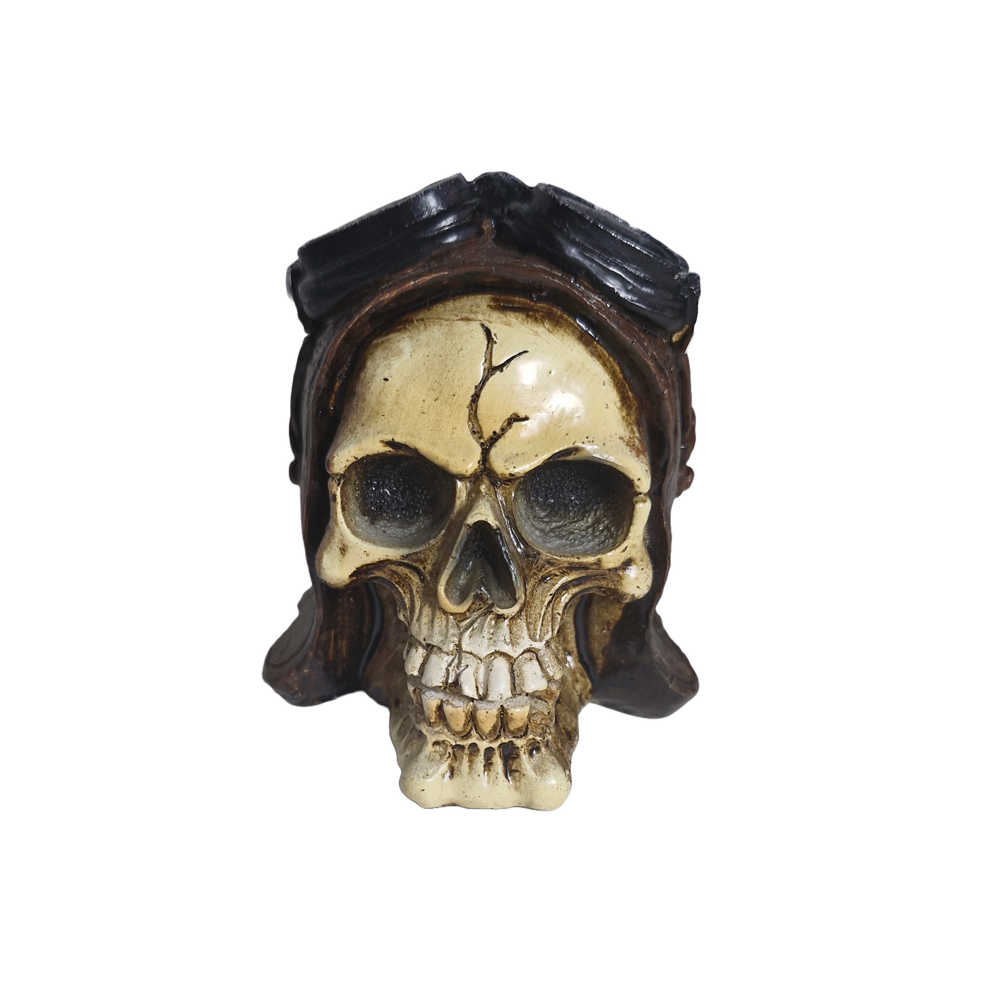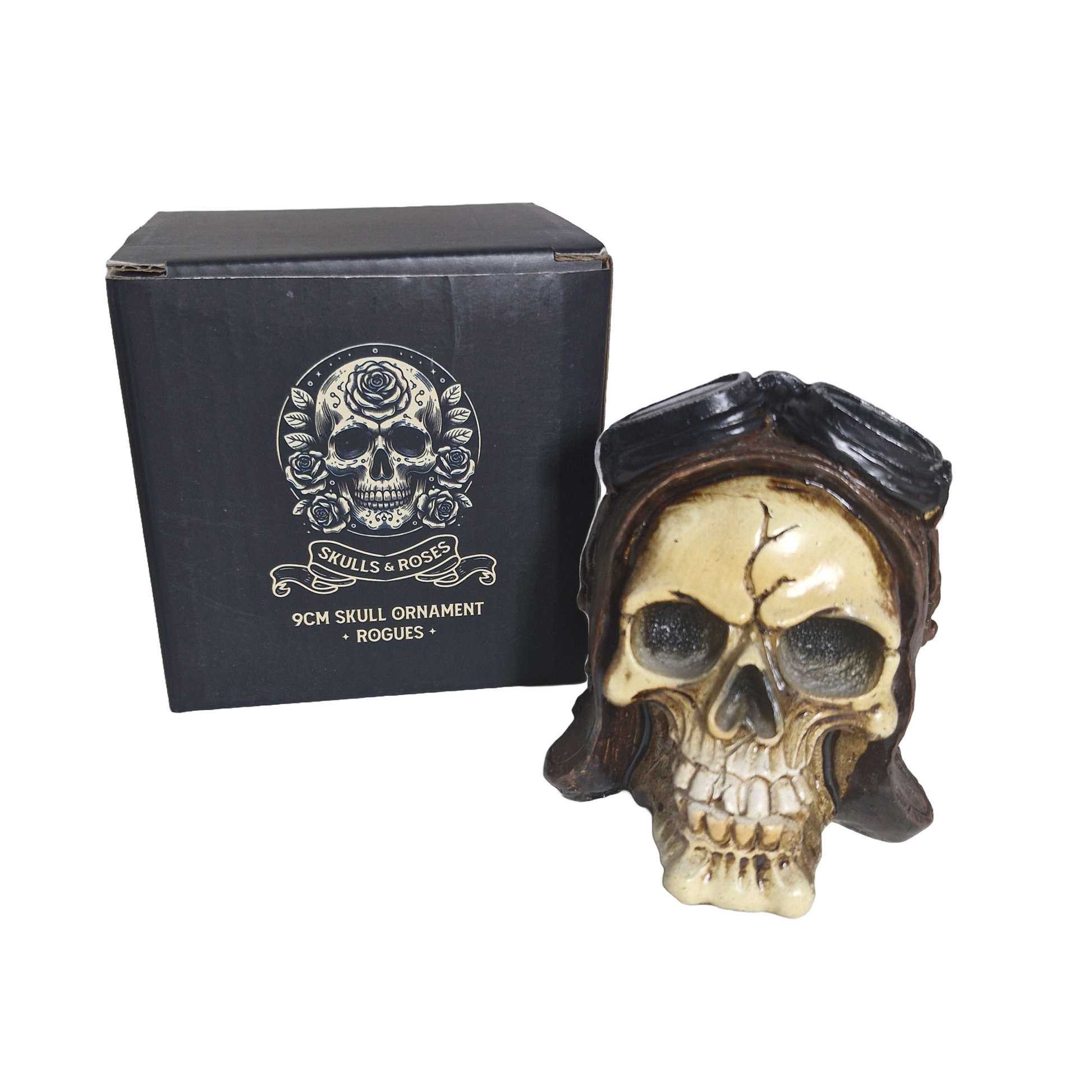 Add a touch of mystery and mischief to your décor with this 9cm rogue-themed skull ornament, featuring a pilot hat and goggles. It’s a bold nod to an adventurous rogue with a rebellious edge. Made from durable resin with fine detailing, it’s the perfect addition to any fantasy display, character collection, or themed décor.