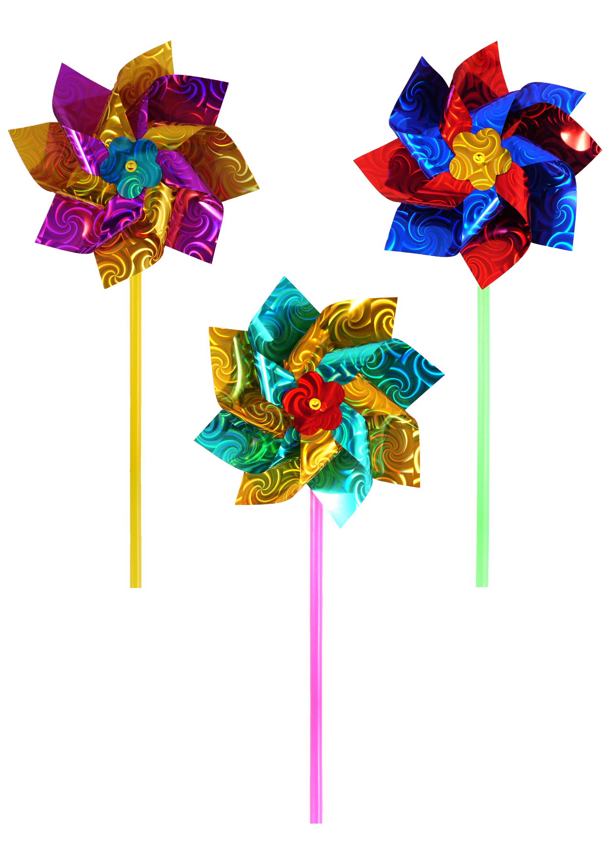 These mini holographic windmills are ideal garden decorations and presents. Size: 15cm. Assorted colours available.
