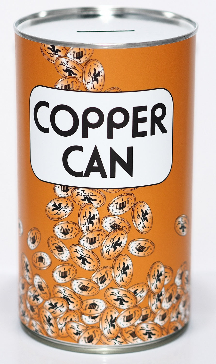 This large Savings Tin (17.5cm) can hold up to £1000 when filled with £1 and £2 coins. The only way to get your money out is with a can opener!
