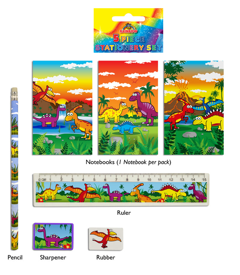 15cm ruler, 17cm rubber tipped pencil, notebook, eraser & sharpener.