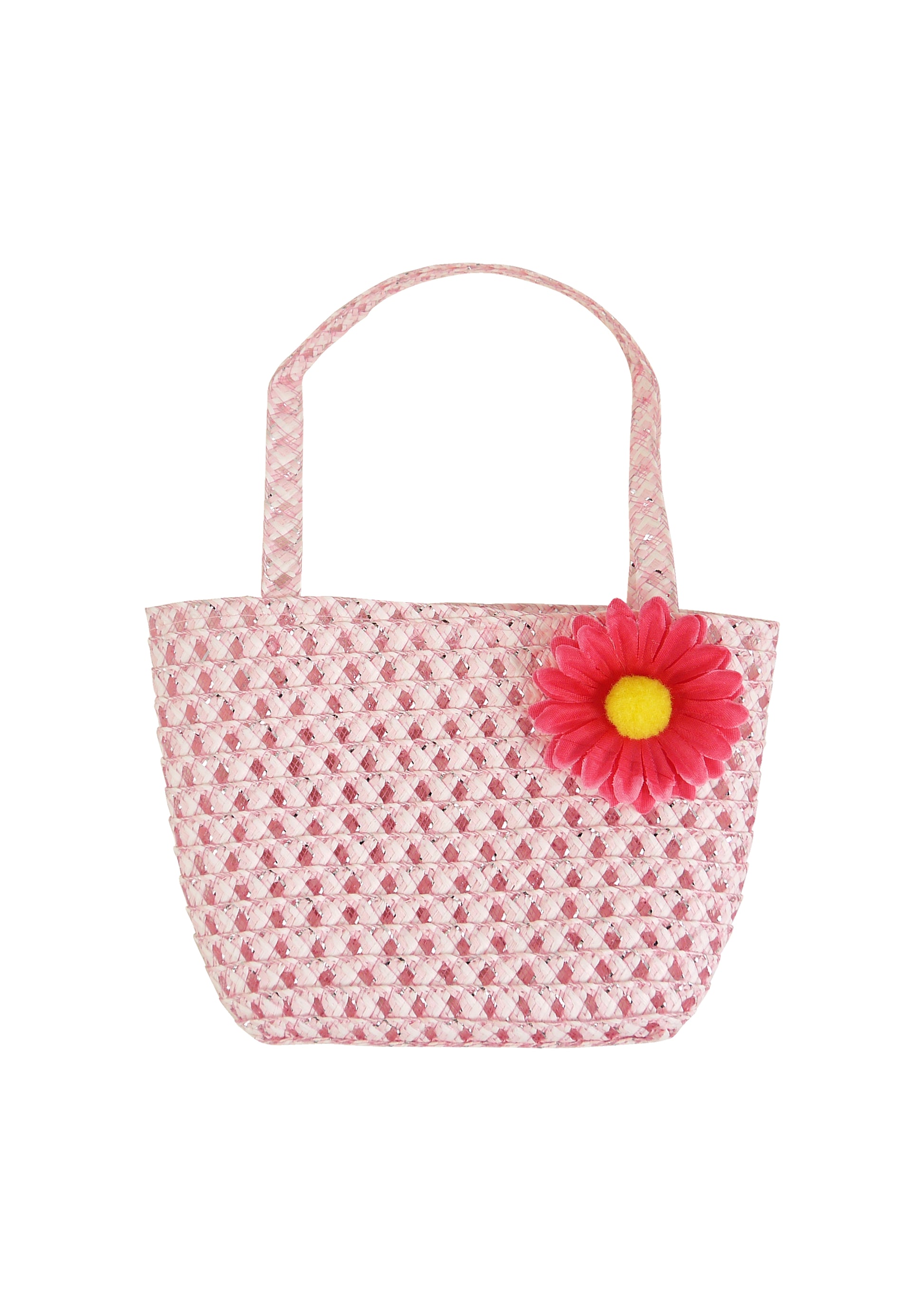 Girls Pink Woven Bag with Flower - 15 X 22.5 Cm