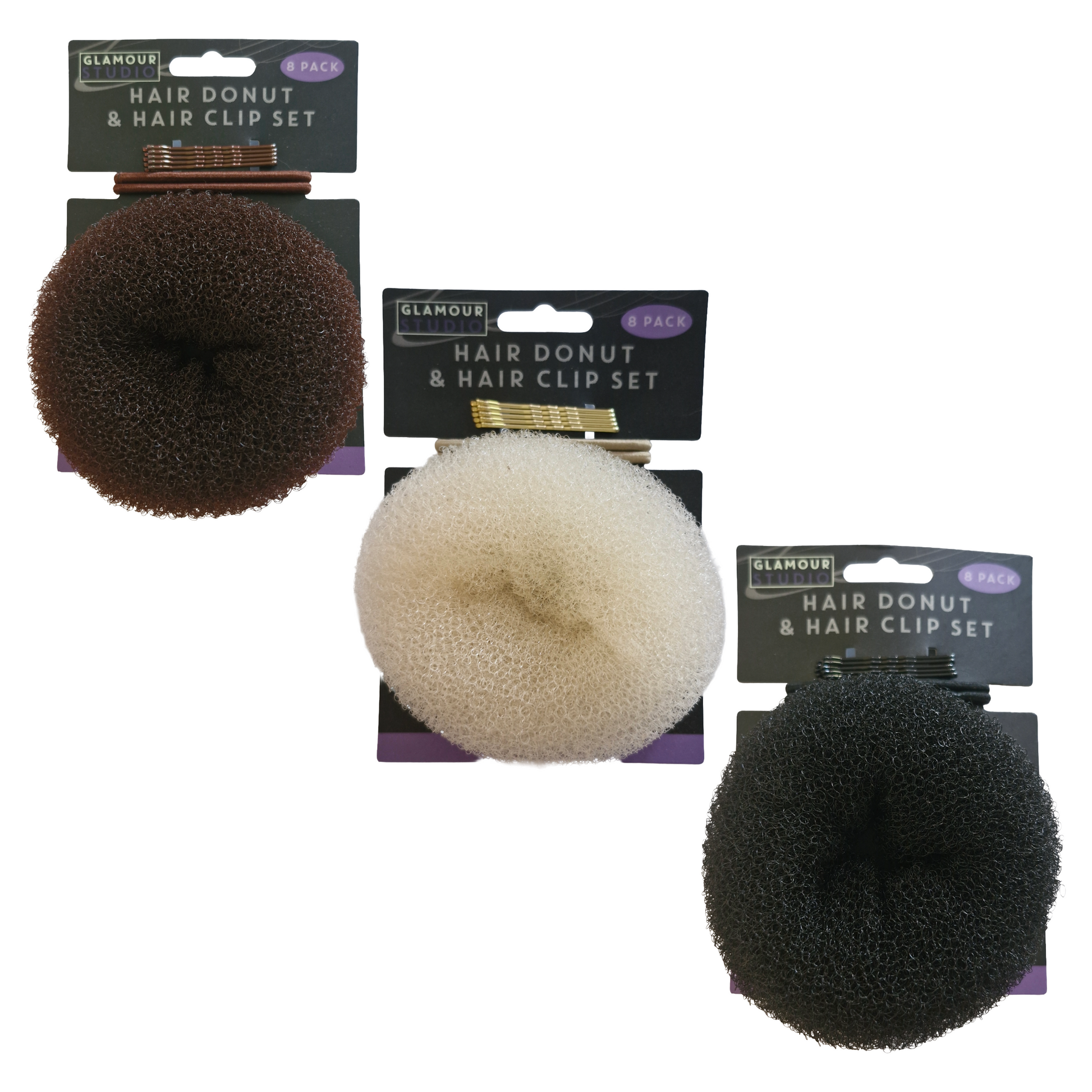 - Includes: 5 x Clips, 2 x Hair Bands and 1 x Donut