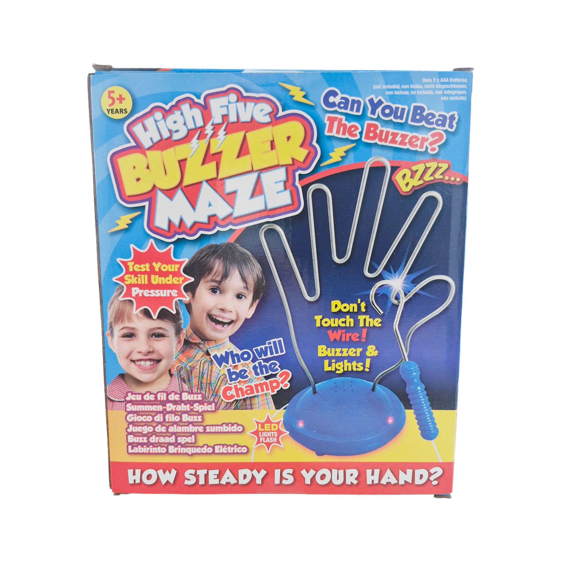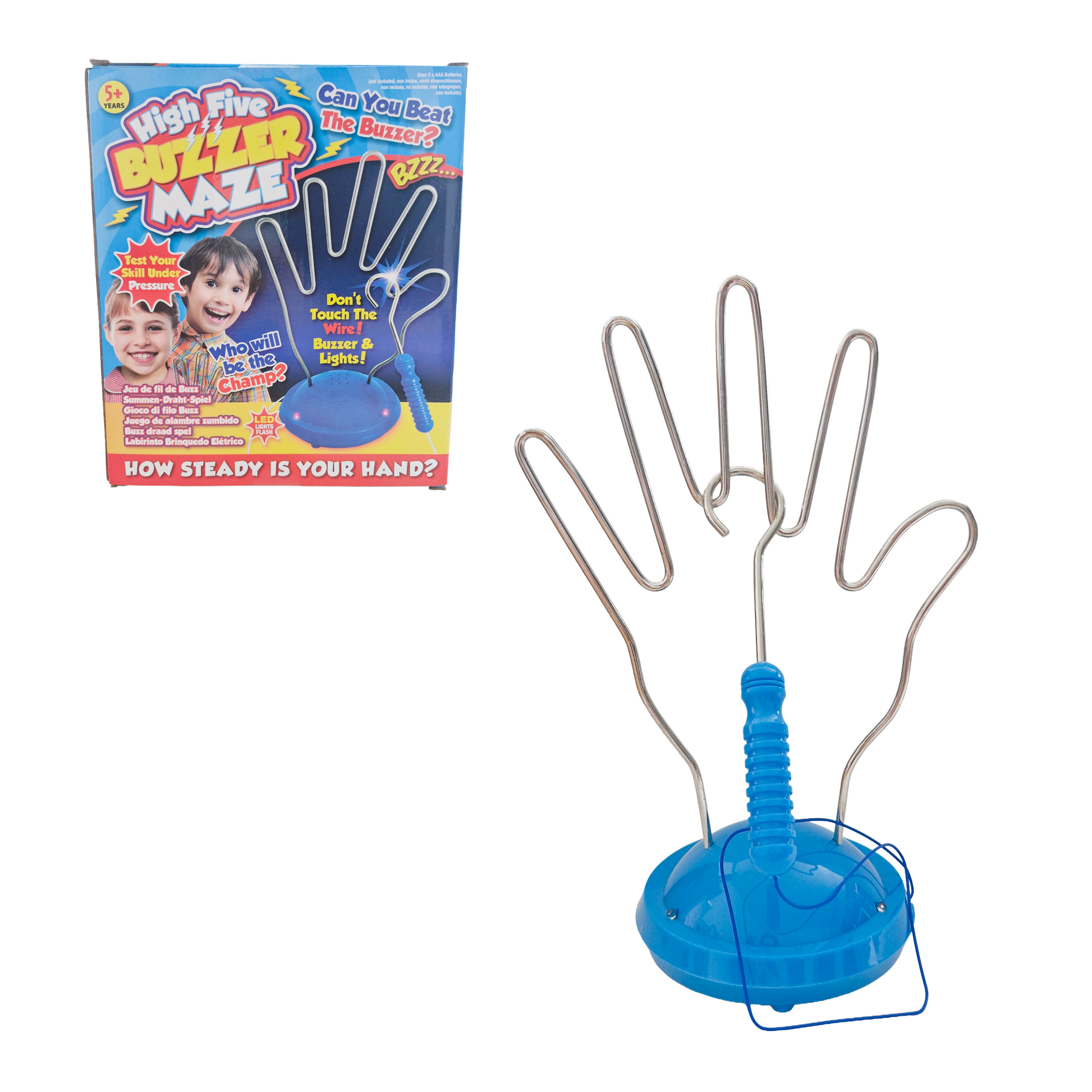 Put your steady hand and sharp focus to the test with the High Five Buzzer Maze! Guide the wand through the twisty wire maze without setting off the buzzer touch the sides, and you'll hear the zzzap! Shaped like a giant high five, this interactive game is perfect for parties, challenges, and nonstop laughs.