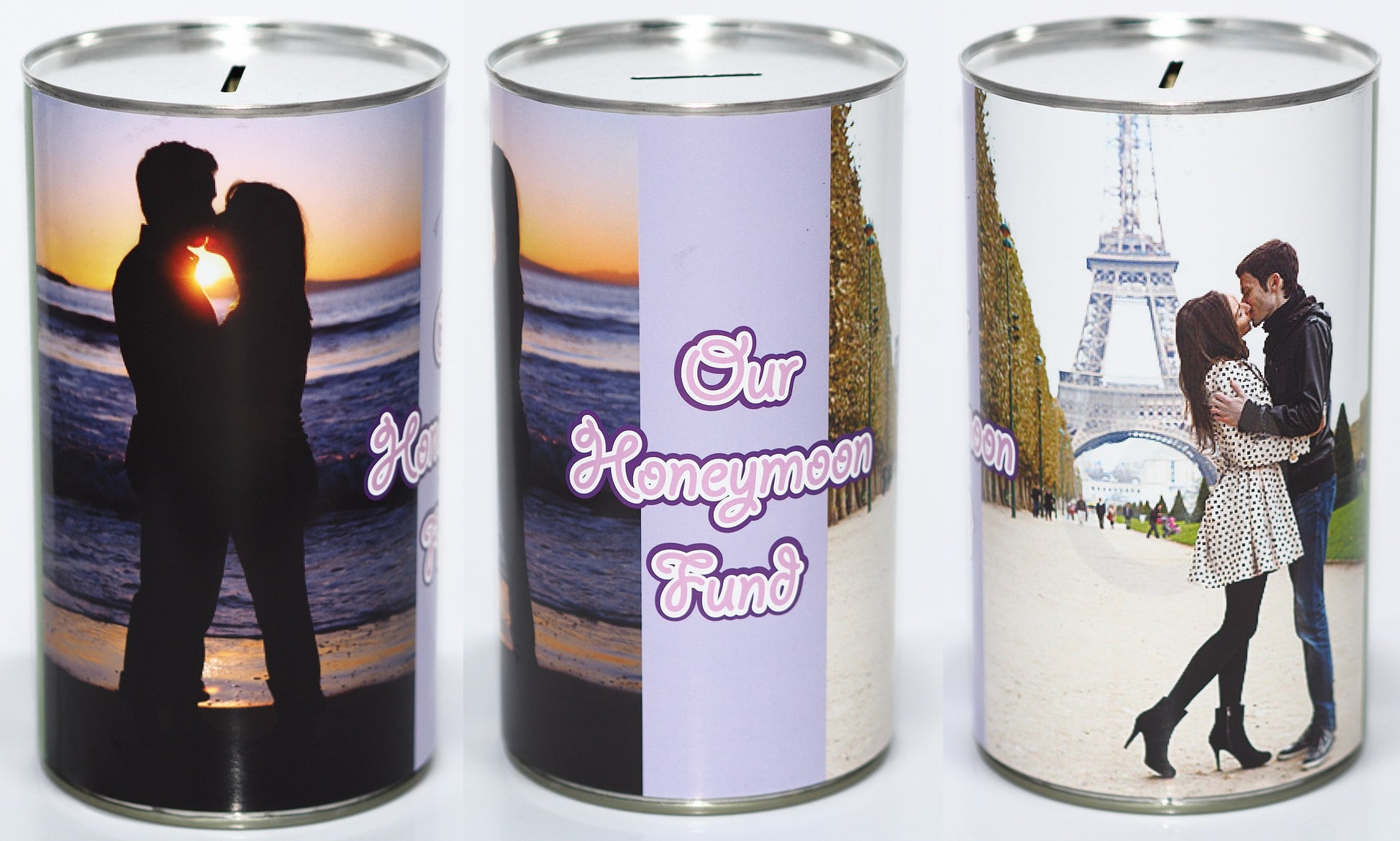 This large Savings Tin (17.5cm) can hold up to £1000 when filled with £1 and £2 coins. The only way to get your money out is with a can opener!