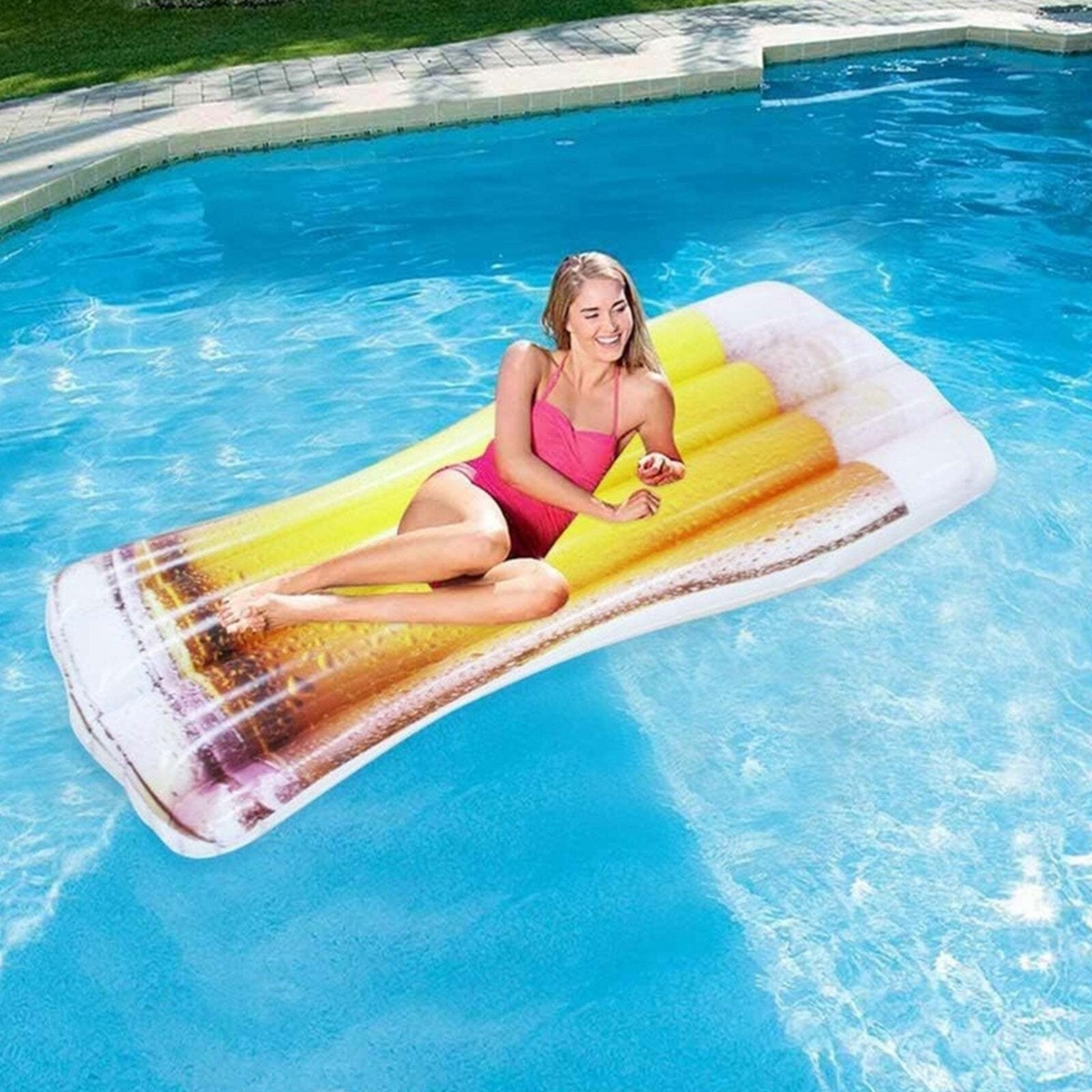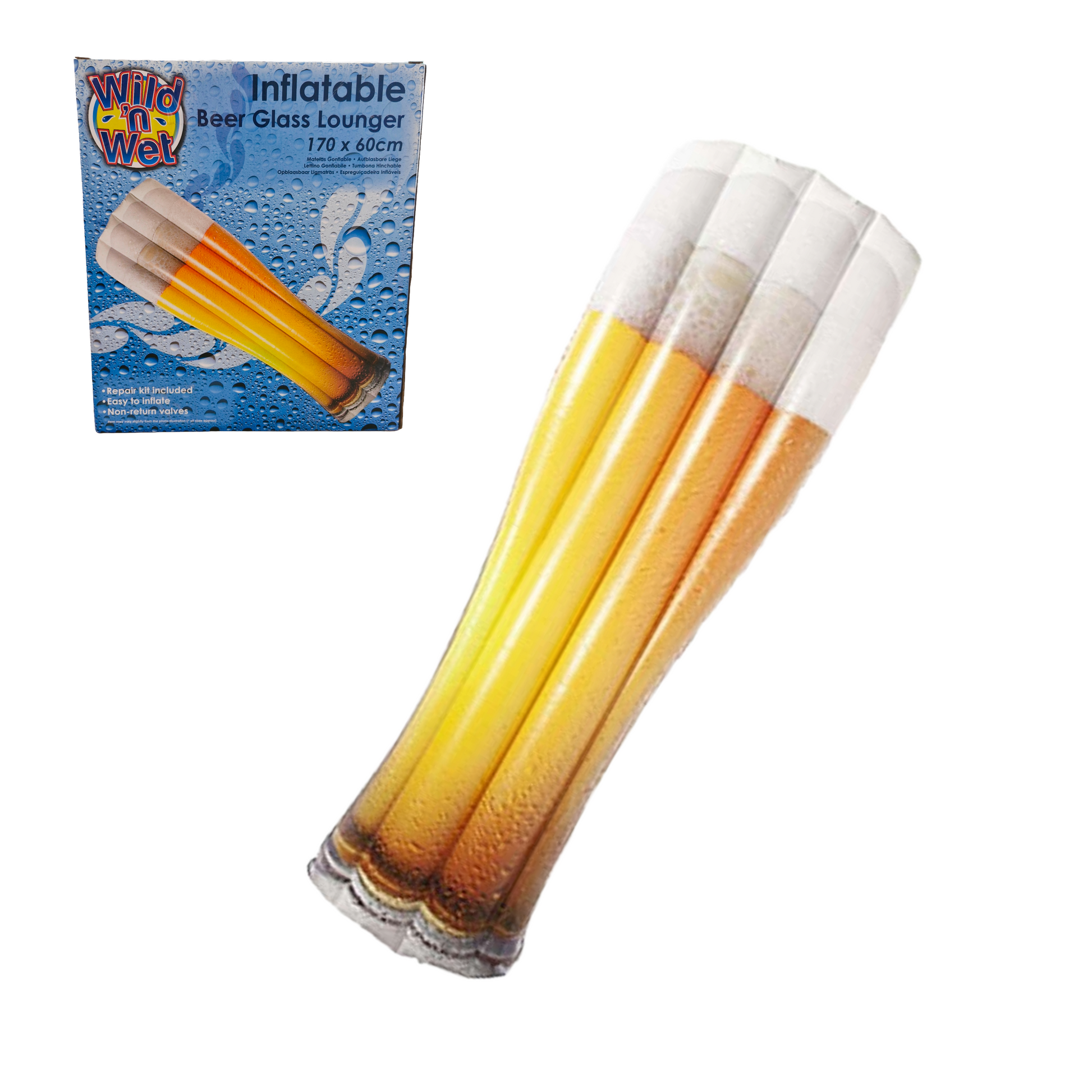Kick back in style with the Inflatable Beer Glass Lounger! Shaped like a giant frothy beer glass, this inflatable lounger is perfect for pool parties, beach days, or lazy afternoons in the sun. Big, bold, and built for floating fun—it's the ultimate way to relax and make a splash.