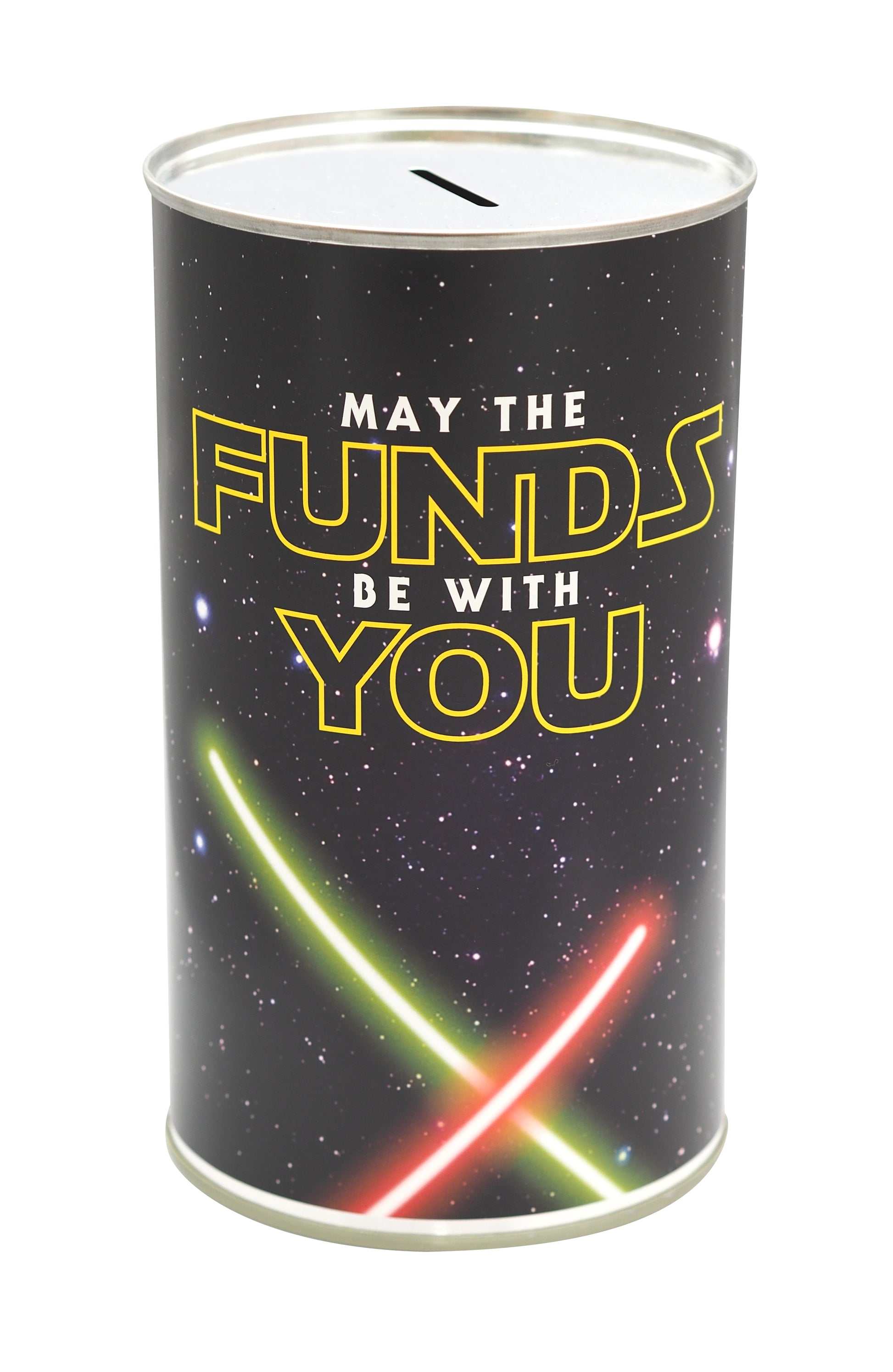 This large Savings Tin (17.5cm) can hold up to £1000 when filled with £1 and £2 coins. The only way to get your money out is with a can opener!