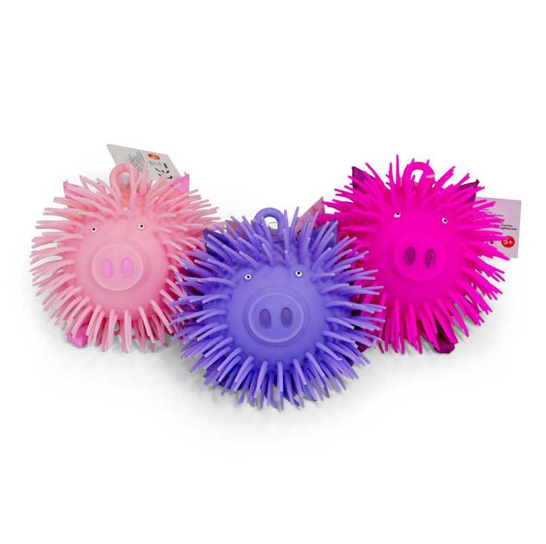 Cute pig puff ball toy that's covered in lots of wobbly strands. This round pig is super squishy and squeezy, but has the added tactile sensation of several long, soft strands all over its body. You can just about see his face and feet poking out from it all. Also features a loop on its back for your finger or a keyring hoop.