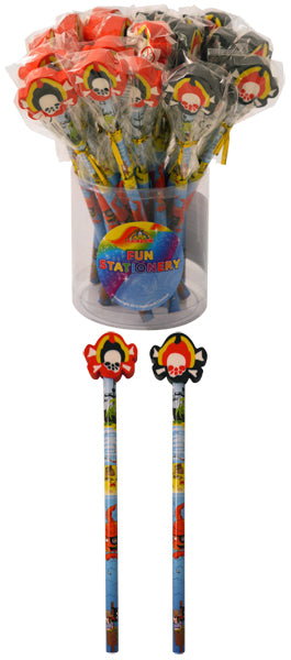 These pirate pencils make ideal party favours and lucky dip prizes, and each pencil comes with a skull and crossbones eraser topper. 2 assorted designs