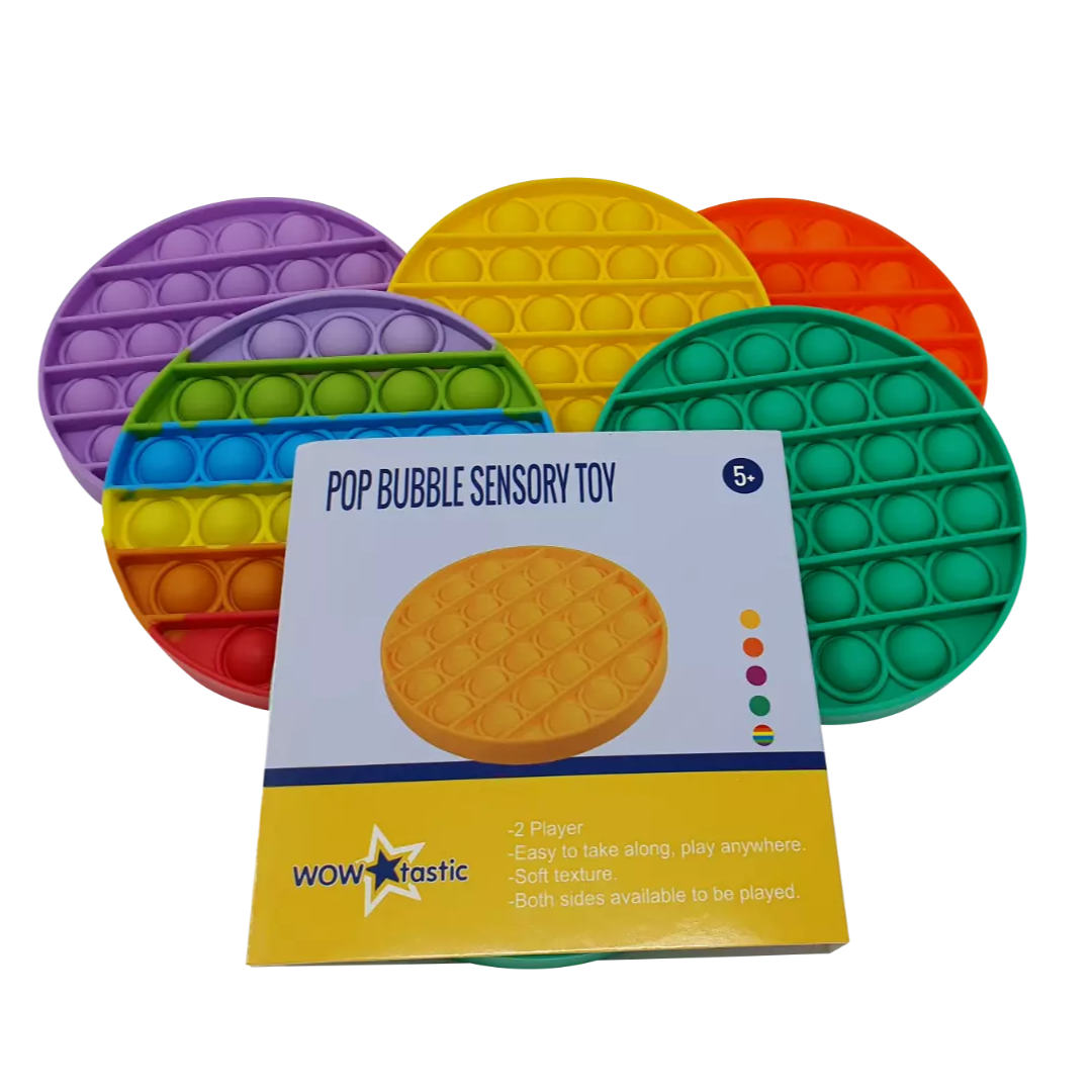 Hugely popular trend line that behaves like reusable bubble wrap. This rainbow coloured pad is covered in small bubbles that make a satisfying pop sound when pushed inwards. After one press, the bubble then appears on the other side, ready to be pushed and popped all over again. This fiddle toy is immensely satisfying to use, and is proving to be a big hit with popular Tik Tok users and other social media influencers. Available in round and square designs in an assortment.