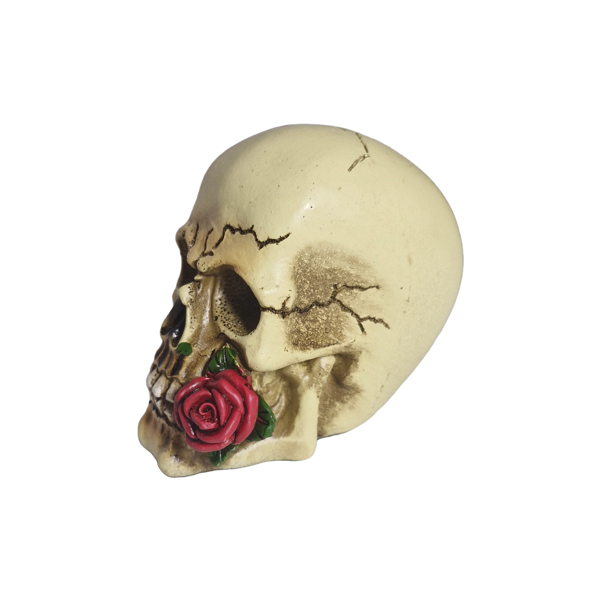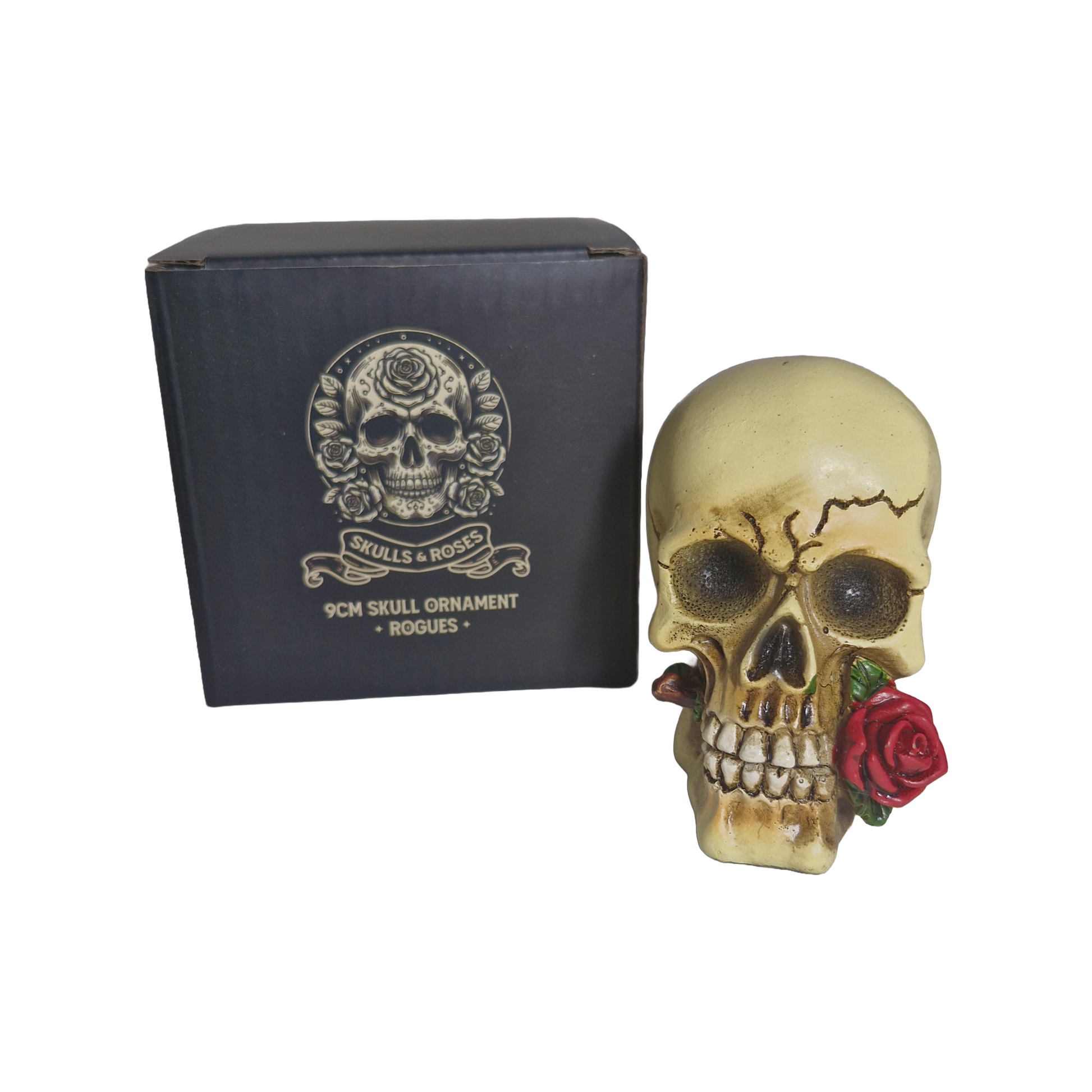 Add a touch of mystery and mischief to your décor with this 9cm rogue-themed skull ornament, featuring a rose in its mouth. This piece evokes the shadowy charm of a cunning outlaw. Made from durable resin, it’s perfect for fantasy displays, gothic décor, or collectors of dark and daring treasures.