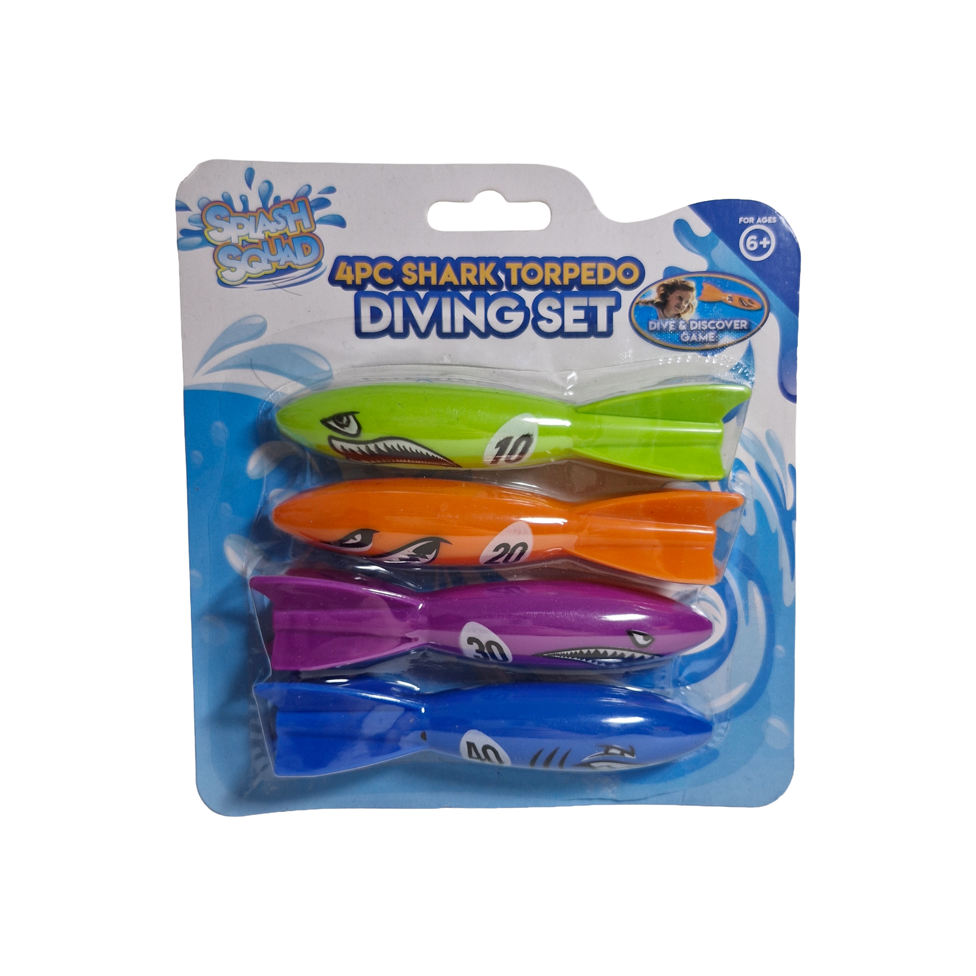 Make a splash this summer with the Shark Torpedo Diving Set! This 4-piece set includes sleek, shark-shaped dive toys that glide through the water like real torpedoes. Perfect for pool games, underwater races, and dive practice, these toys are a must-have for active kids and water lovers alike.