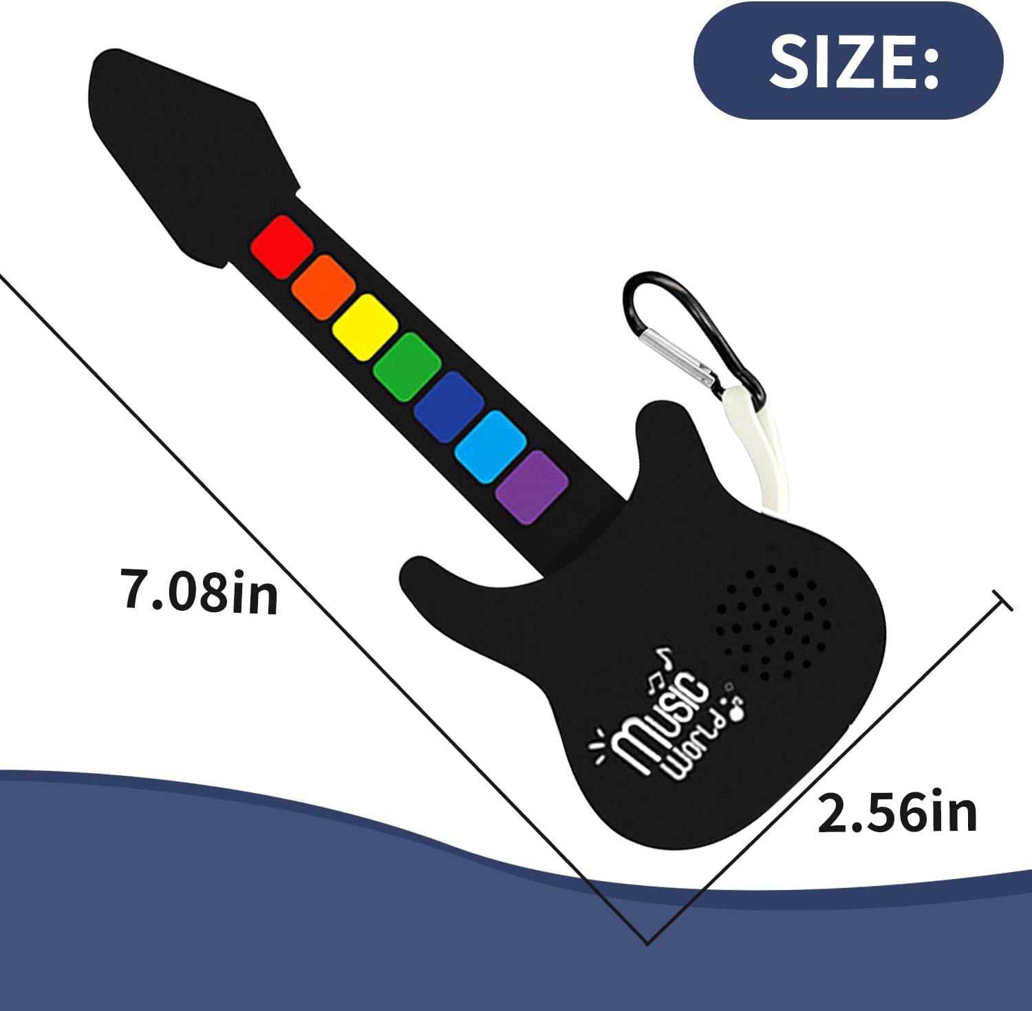 - Guitar: 7.08 x 2.56 in