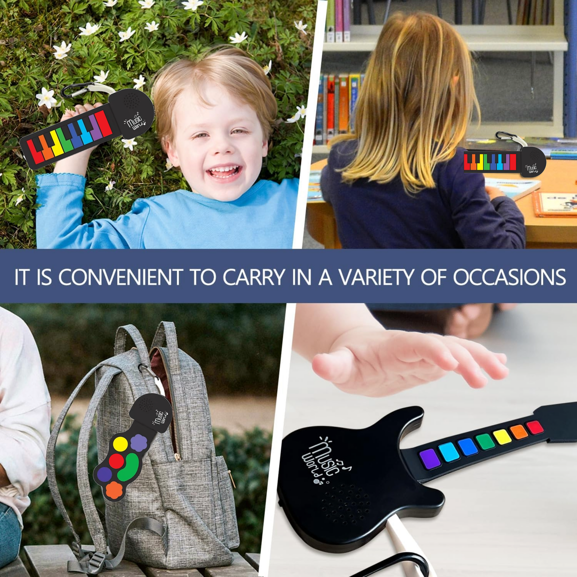 - Each Pack Contains: 1 Chosen Silicone Music Instrument With Clip