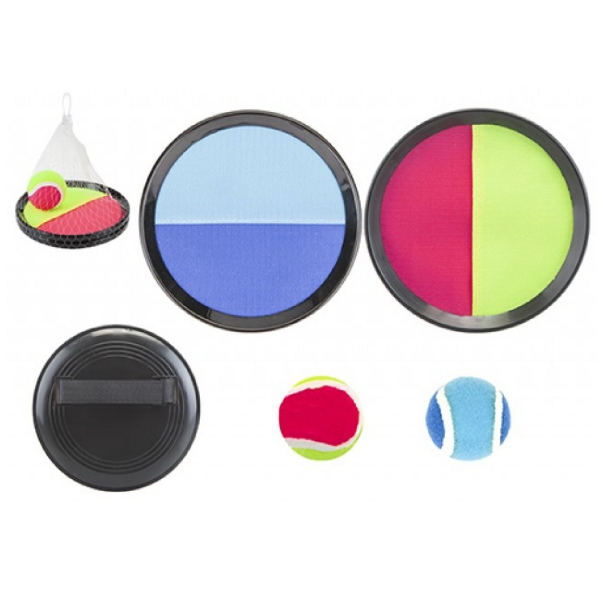 Enjoy classic outdoor play with this Velcro catch ball set, perfect for parks, gardens, or the beach. The set includes two handheld pads with secure straps and a soft ball that sticks easily for endless throwing and catching fun. Great for improving hand-eye coordination and encouraging active play, it's lightweight, easy to carry, and suitable for kids and adults alike.